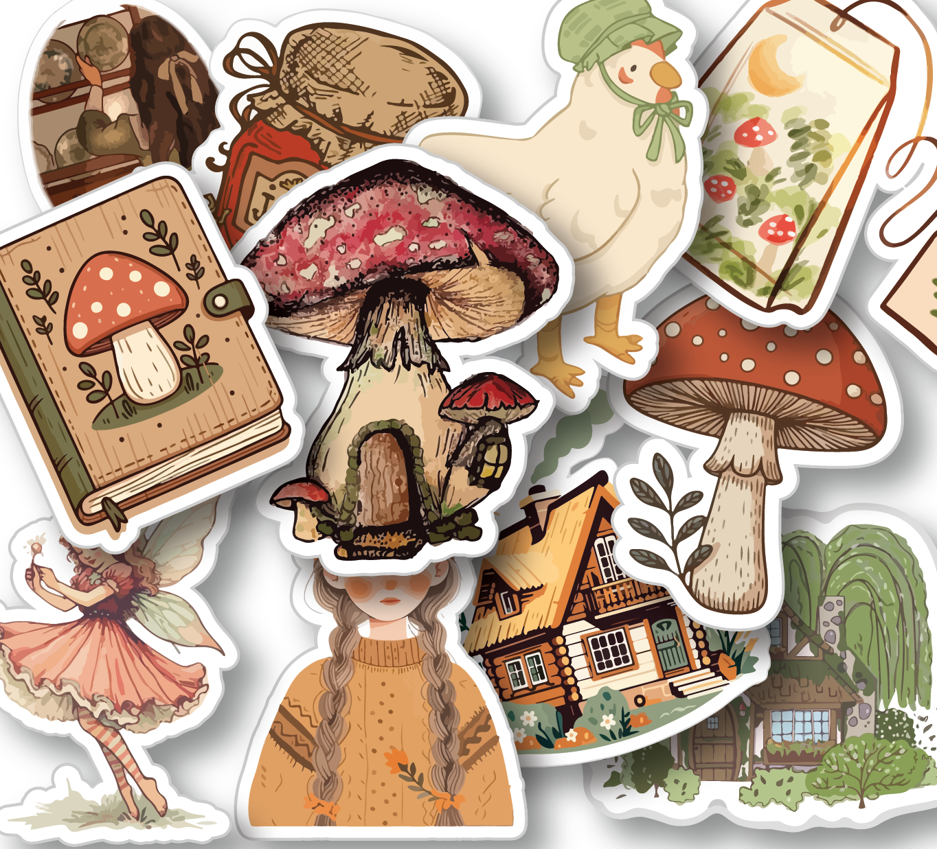 Bring calm, nature-inspired beauty to your everyday items with our Cottage Core Stickers. Designed with soft pastels, florals, mushrooms, vintage objects, and cozy countryside themes, this sticker pack captures the charm of simple, rustic living. Made from premium waterproof vinyl, each sticker adds a dreamy, whimsical touch to journals, laptops, water bottles, and more